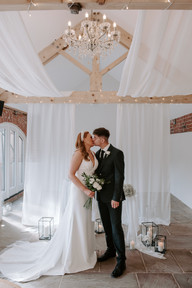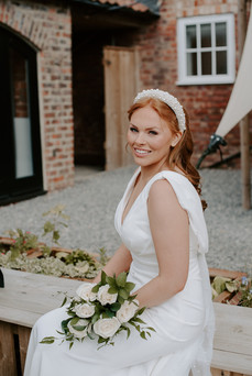 Designed and curated by Jayne Moyle Photography, the crisp elegant monochrome theme for this shoot worked so well against the backdrop of The Old Dairy at Howard Court Weddings. The theme was brought to reality by a team of amazing suppliers. Pear Tree Lane styling added luxurious fabrics to the naturally bright space by draping fabrics the length of the barn through the gorgeous wooden beams. The elegant styling was complimented beautifully by the florals designed and supplied by All in Bloom floristry. The stationary from Gerty and Gardiner fit in with the styling and florals perfectly. The dress provided by Little Pearl Bridal went beautifully with the accessories from Star Box Designs, alongside the suit from Mr Munro, which added to the beautiful timelessness of the shoot.